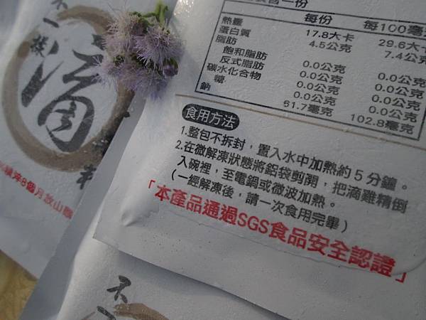 封裝滴雞精的白色袋子是鋁包裝袋,因此要食用之前可以整包不拆封、直接置入熱水中加熱五分鐘就可以飲用了。